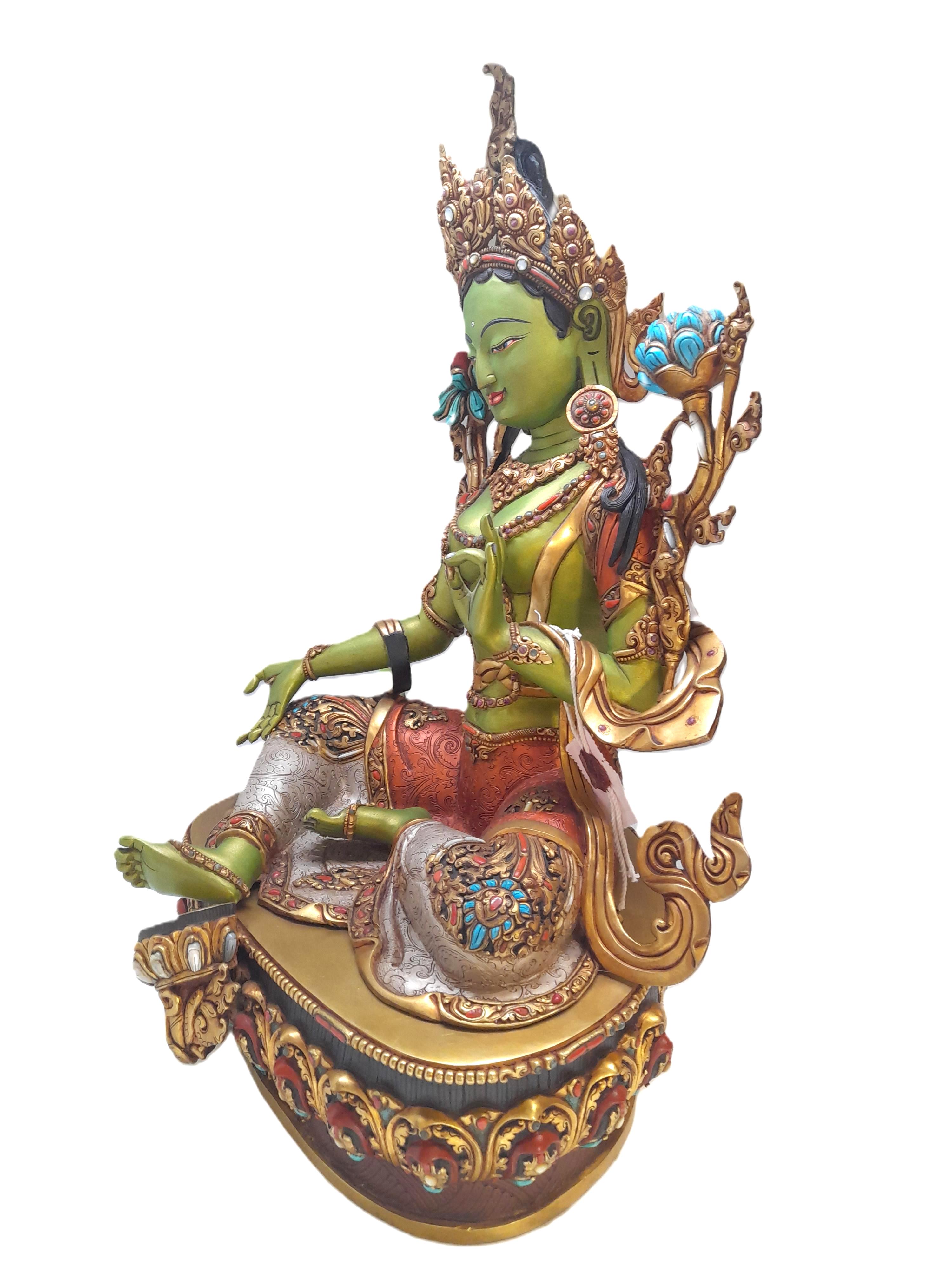 綠度母,藏傳佛教中的一位重要菩薩,為觀音菩薩的化身之一。她被視為救苦救難的象徵,特別在緊急情況下的護佑。