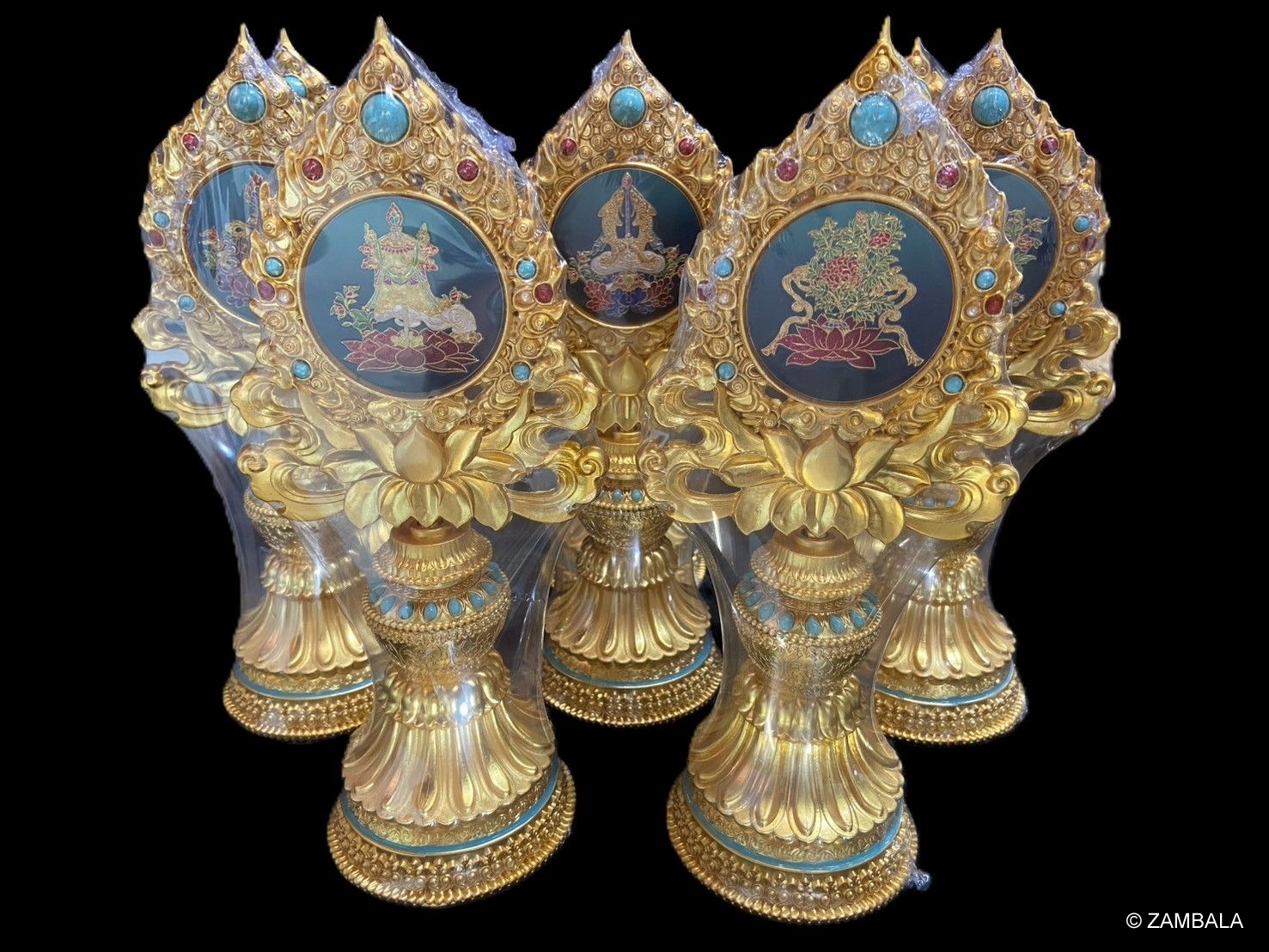 4. **寶瓶**(བུམ་པ་):象徵智慧與福德的圓滿,代表修行者能獲得無盡的法財與加持。