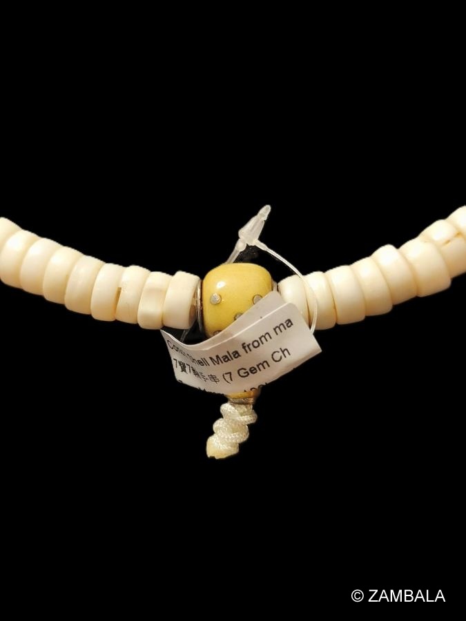 - 藏傳佛教中,修「大白傘蓋佛母法」或「白度母」時,必須使用純硨磲念珠,認為可增強「白光護佑」的加持力。
