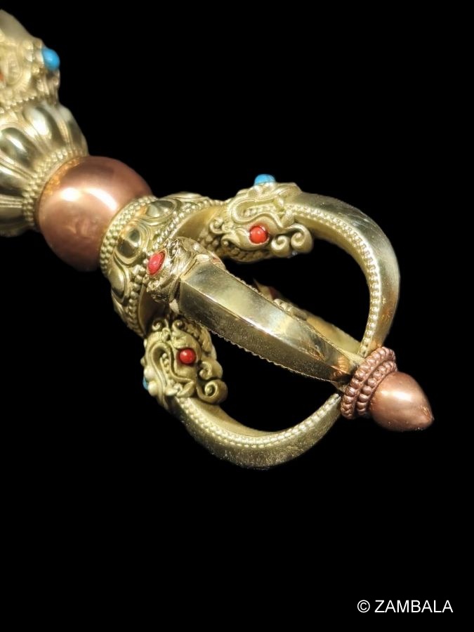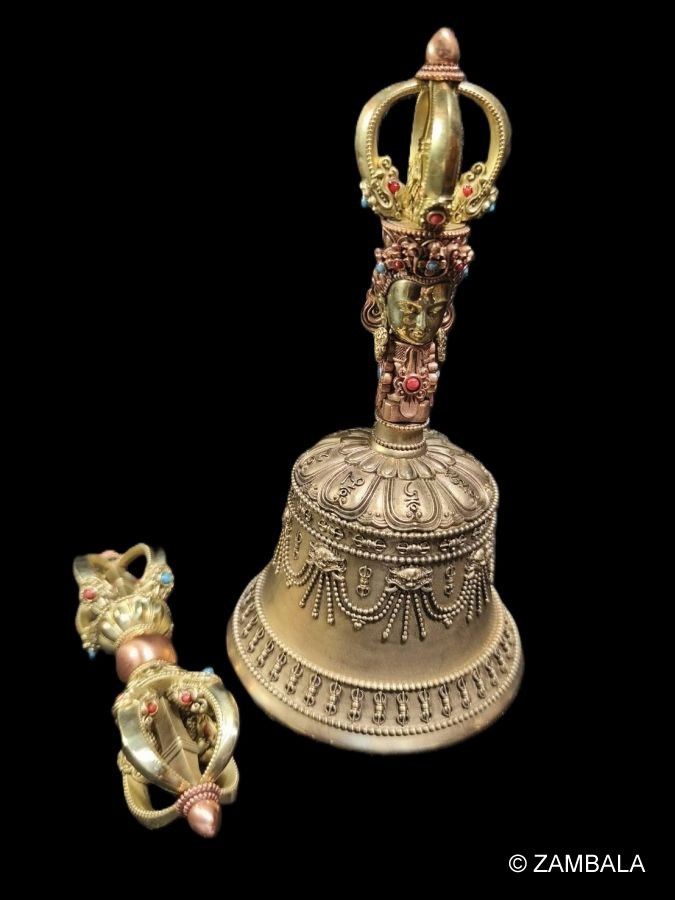 - 鈴的上半部是半金剛杵:象徵方便與智慧本來無二。