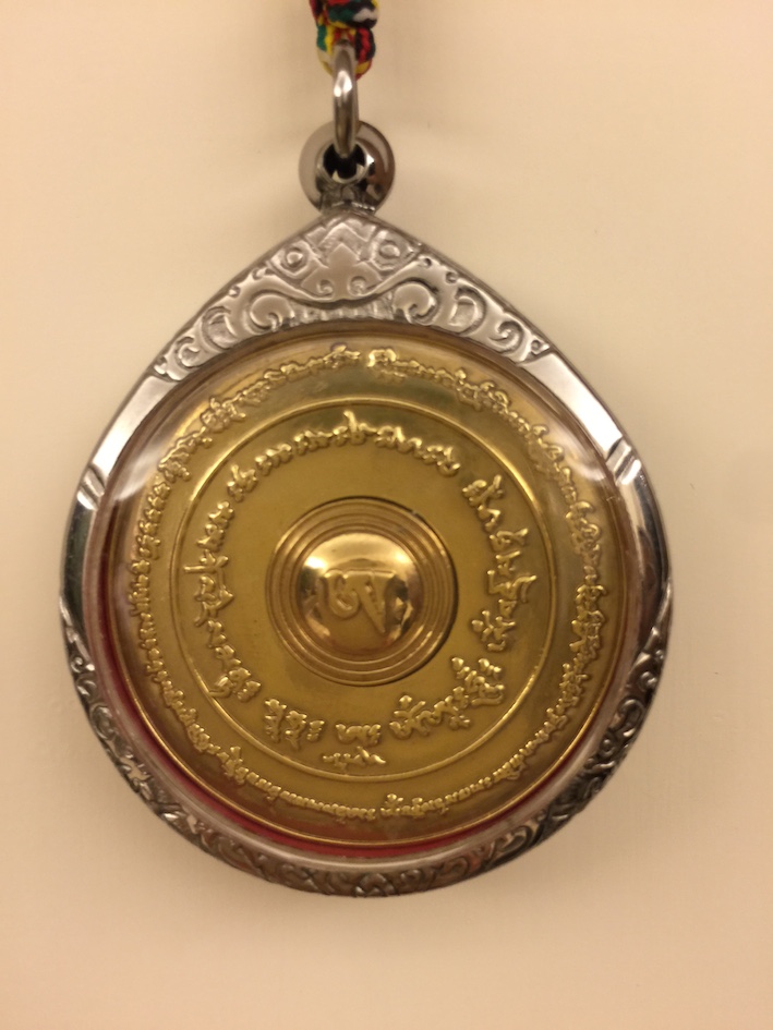 為利益眾生故,虛空法林佛學會住持 貝瑪仁增仁波切 妥善修製出自大寶伏藏大圓滿繫解脫與防護一切病魔障礙之金剛鎧甲護輪。(護輪乃雙面,一面是繫解脫密續另一面是金剛鎧甲)於 措尼仁波切傳授大圓滿覺性力灌頂暨繫解脫之灌頂時加持之。