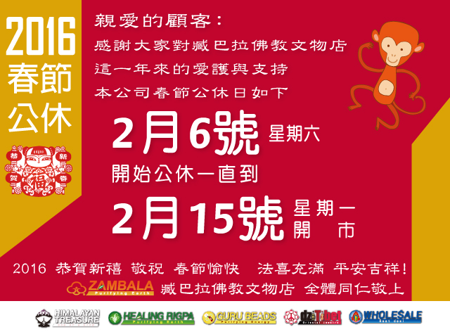 | 2016新春公休公告 2016/2/6-2/14春節連假 |