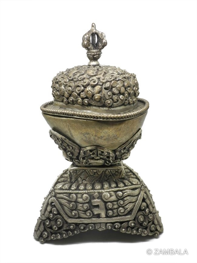 - **供養**:盛裝甘露(amrita)或其他供品,供奉本尊或護法神(如瑪哈嘎拉),用於法會、灌頂或火供(homa)。