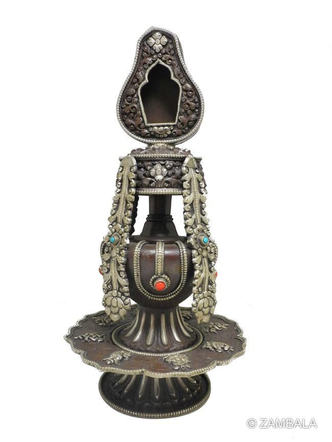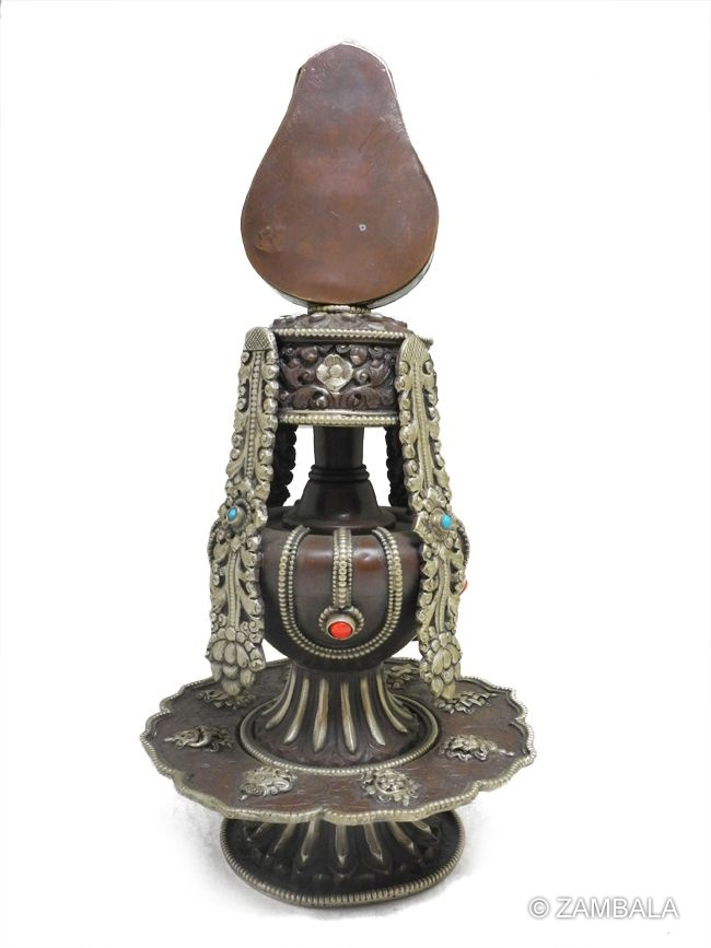 材質 : 紅銅 . 鑄造 . 鎏銀 . 鑲崁寶石 . 手工製造 . ( 尼泊爾 )