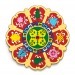 八吉祥杯墊是佛教用品,特別盛行於藏傳佛教和漢傳佛教的供佛儀軌中。它是由「八吉祥」(Ashtamangala)圖案繪製或雕刻而成的圓形或方形墊子,用於放置供水杯或其他法器。八吉祥本身是佛教中象徵吉祥、福德與智慧的八種瑞相,傳統排列順序為:寶傘(保護與尊貴)、金魚(自由與和合)、寶瓶(財富與長壽)、蓮花(純淨與覺醒)、右旋白螺(佛法宣說)、勝利結(無盡與圓滿)、勝利幢(勝利與轉化)、吉祥雙魚(繁衍與喜樂)。這些符號不僅代表佛陀的功德總集,還象徵法界一切奇珍異寶,用來供養三寶(佛、法、僧)能迅速圓滿福慧資糧。
