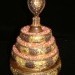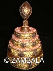 曼達盤通常由多層塔盒和螺頂組成,每層塔盒中空,可裝滿金銀、寶石、糧食等供物。修法時,修行者一邊誦念真言,一邊將供物撒入曼達盤中,逐層堆疊至螺頂,象徵祈願吉祥幸福。