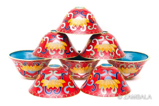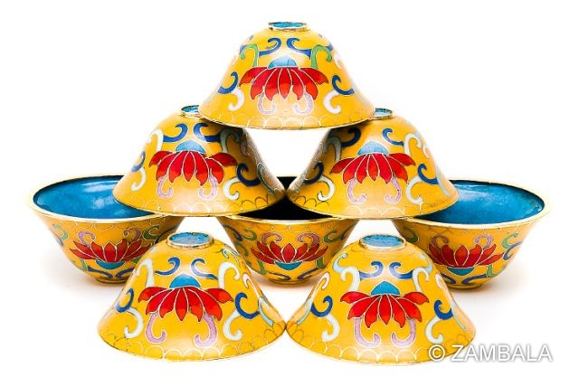 - **影響**:使用八供杯能幫助修行者達成「七支供養」(或七肢修行),包括禮敬、供養、懺悔、隨喜、請轉法輪、請佛住世、迴向等,從而淨化負面傾向,培養覺悟品質。供水是最常見的供養方式,因水易得且象徵空性(無常、無執),適合初學者。景泰藍八供杯的影響還延伸到文化層面,成為藏漢佛教交流的橋梁,在現代佛教藝術中廣受收藏與使用,強化了藏傳佛教的全球傳播。