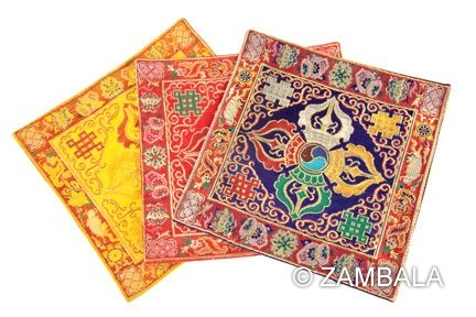 - **藏傳佛教的影響(7世紀起)**:在西藏,桌布稱「chog tsher」(藏文:ཆོག་མཚོན་),源自苯教傳統的祭壇布,後融入密宗。這些布料多為手工織染,圖案包括壇城曼陀羅、金剛杵或護法神像,用於修法時營造神聖氛圍。現代尼泊爾與西藏出口的佛桌桌布,常見厚實棉質,尺寸約80-100cm方形,源自8世紀蓮花生大士傳入的密宗儀軌。