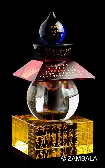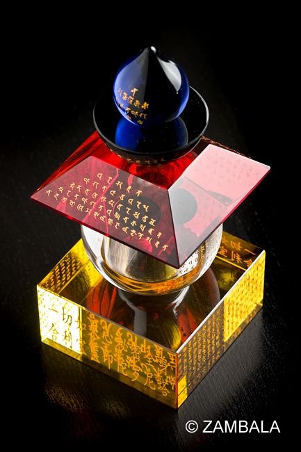 - **建塔與裝藏儀式**:信眾依經文製作塔(如土、石、木、金屬或水晶),將陀羅尼咒文書寫或印刷安置其中。經文稱,此舉使塔立即變為七寶所成,高至天宮,受諸天供養。儀式包括以香華塗香、華鬘、衣服供養;右繞塔七匝、流淚悔過;發心造塔(大小隨力,高僅四指亦可)。水晶彩色版本常用於現代家居或寺廟裝藏,彩色層層象徵五輪平衡宇宙能量,增強咒力。