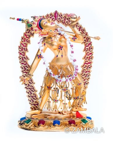 一面三目二臂,她是薩迦派密續重要的修習本尊之一,為噶舉派師祖「那若巴」的金剛瑜珈女。右手持金剛刀鉞刀,左捧盛血的人頭顱缽,做飲血狀,飲血意指以智慧來耗盡生命能量,停止輪迴。斜背金剛骷顱杖,身戴骷顱頭項鍊,胸掛法輪瓔珞。他具備超自然的神祕能源,可協助密宗修行者取得智慧。