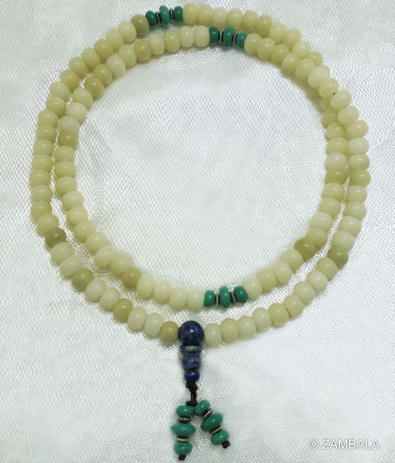 - 菩提根念珠是近15~20年才在漢傳佛教圈流行起來的「新興」念珠材料。早期(2000年前後)多由尼泊爾當地人手工挖取百年以上老樹的根莖,經長年盤玩後呈現象牙白或米白色,質地極其堅硬細膩,因此被稱為「菩提根」。