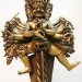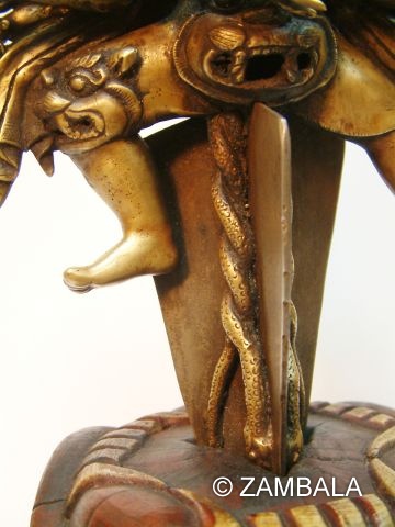 普巴杵的形狀一般為三面或四面錐狀,頂部通常為金剛杵或蓮花寶座,中間有兩條交叉的天蛇,象徵著控制和調伏。普巴杵的尖端鋒利,用於釘地驅邪和護持。它象徵著智慧的鋒芒,可以刺破無明和煩惱,讓修行者達到解脫。