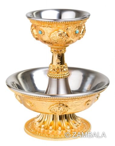 - 供杯中通常會放置供品,如糌粑(烤青稞粉)、酥油、酒、水、鮮花、香料等,具體視儀式而定。