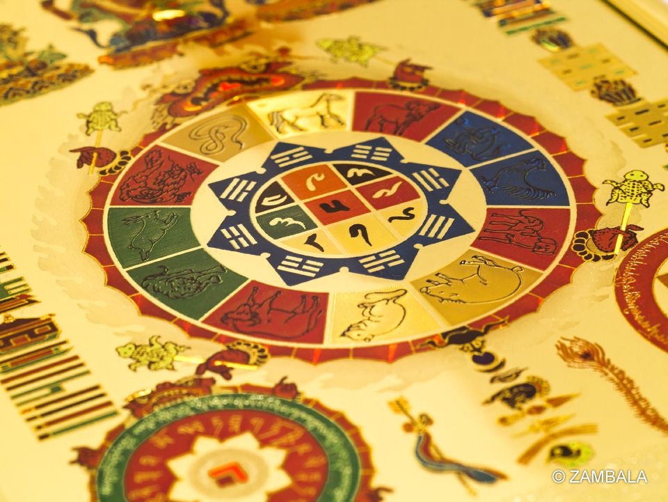九宮八卦在藏傳佛教中具有深遠的歷史和文化意義。它結合了中國道家的八卦和十二生肖,並融入了藏傳佛教的智慧。以下是關於九宮八卦的詳細介紹: