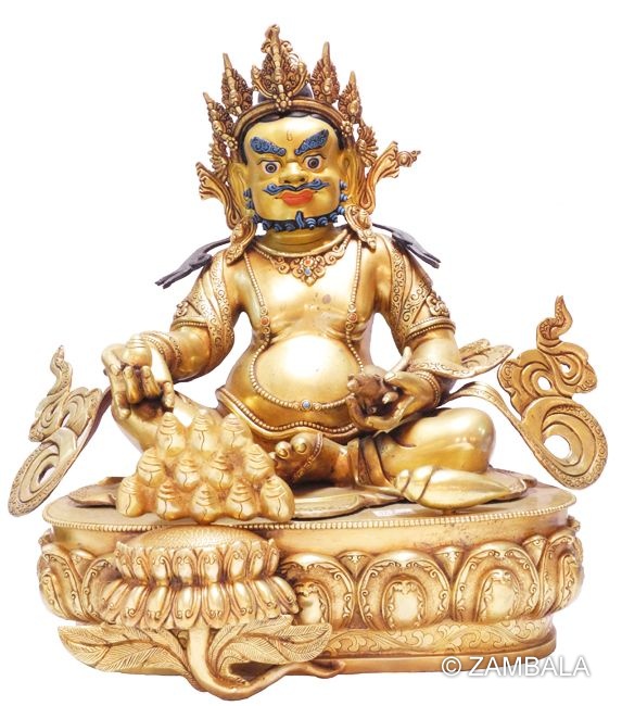 黃財神(Yellow Jambhala,或稱 Dzambhala),是藏傳佛教(金剛乘)中重要的財富守護神,主要象徵繁榮、慷慨與豐饒。他並非鼓勵貪婪的財富積累,而是幫助修行者消除貧窮障礙,提供物質與精神上的穩定,讓人能專注於佛法實踐並實行布施(dana)。 在佛教儀式中,黃財神扮演的角色是「財富引導者」,透過特定儀軌來召喚其力量,目的是培養菩提心(Bodhichitta),即以慈悲為動機的覺醒之心。修行者相信,透過他的加持,能獲得財務穩定,從而支持幫助他人、供養僧團,並避免貧窮導致的苦難。