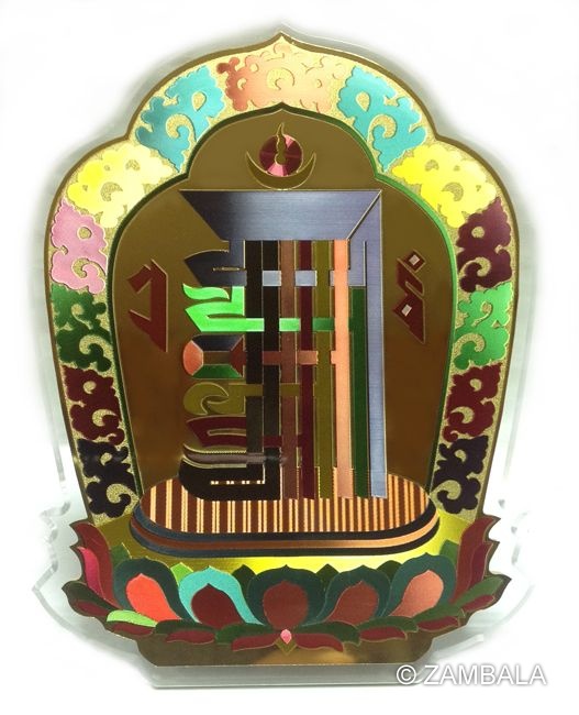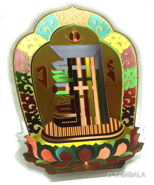 內容介紹:時輪咒牌為梵文書寫之時輪咒輪,又被稱為「十相自在」,常作護符使用。在西藏及尼泊爾等地,常被繪製於寺廟與家庭正門的屋檐下,具有消災避邪的作用。