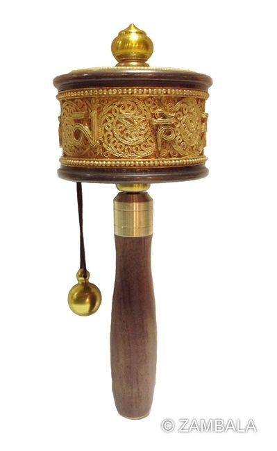 手搖轉經輪在藏傳佛教中是一種非常重要且具有深厚歷史的法器。轉經輪,又稱為「轉經筒」,在藏語中稱為「瑪尼轉經輪」(མ་ནི་སྐུ་སྒྲུབ།,*mani khorlo*)。其主要目的在於透過轉動轉經輪來念誦經文,累積功德。