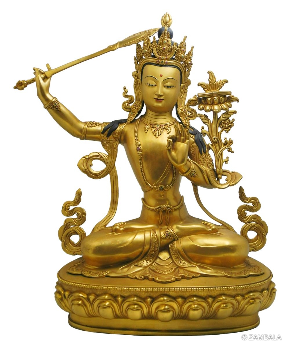 - **密宗實踐的核心**:在金剛乘(Vajrayana)中,文殊菩薩是重要的本尊,相關經典如《文殊根本續》(Mañjuśrīmūlakalpa)和《文殊師利名誦》(Mañjuśrīnāmasamgīti)被廣泛修持。他的伴侶有時被視為 Saraswati(辯才天女),強調智慧與語言的連結。