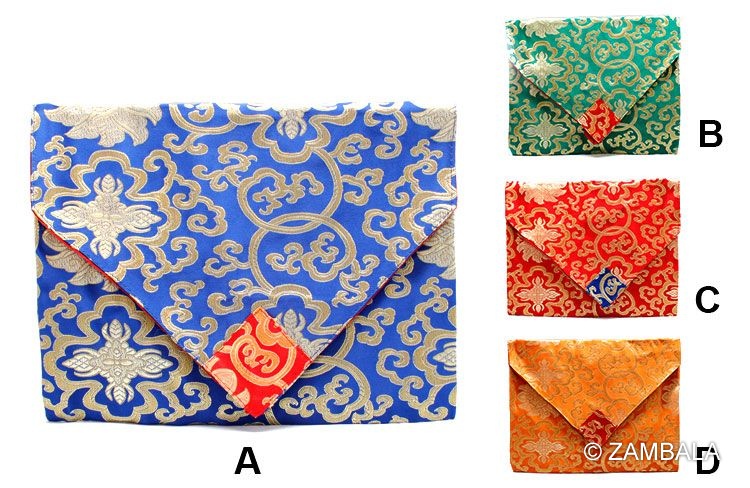 - 較大型的經書套會做成「信封式」或「包袱式」,有內襯、扣帶、提繩。