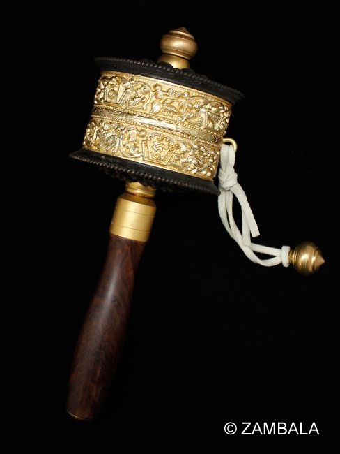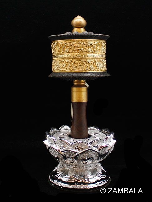 手搖轉經輪在藏傳佛教中是一種非常重要且具有深厚歷史的法器。轉經輪,又稱為「轉經筒」,在藏語中稱為「瑪尼轉經輪」(མ་ནི་སྐུ་སྒྲུབ།,*mani khorlo*)。其主要目的在於透過轉動轉經輪來念誦經文,累積功德。