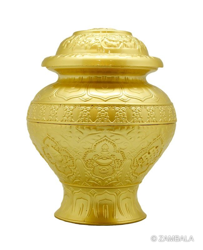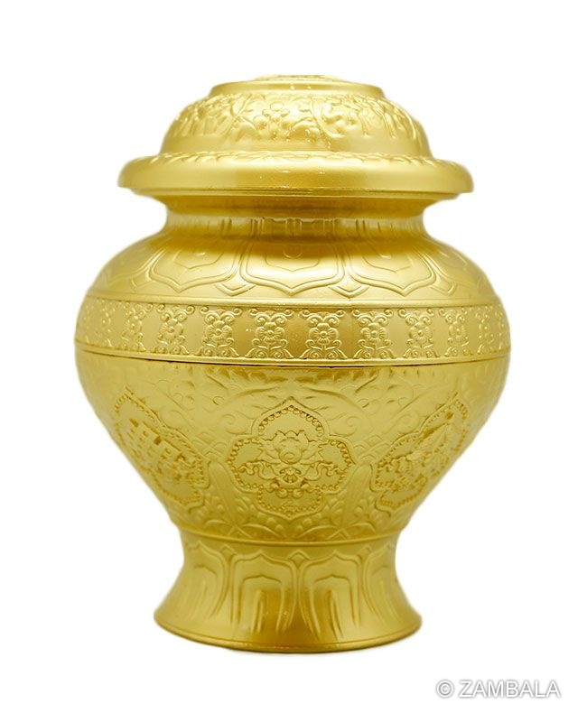 在藏傳佛教(金剛乘)中,「寶瓶」(藏語:奔巴,梵語:Kalasha 或 Bumpa)是極為重要的法器與吉祥象徵,主要有兩種形式:一是作為**八吉祥物**(八瑞相)之一的象徵性寶瓶,二是實用的**如意寶瓶**或**財富寶瓶**(Treasure Vase),常用於儀軌、供奉或風水調整。以下從由來、裝藏方法、使用方式、寓意與影響等方面說明。