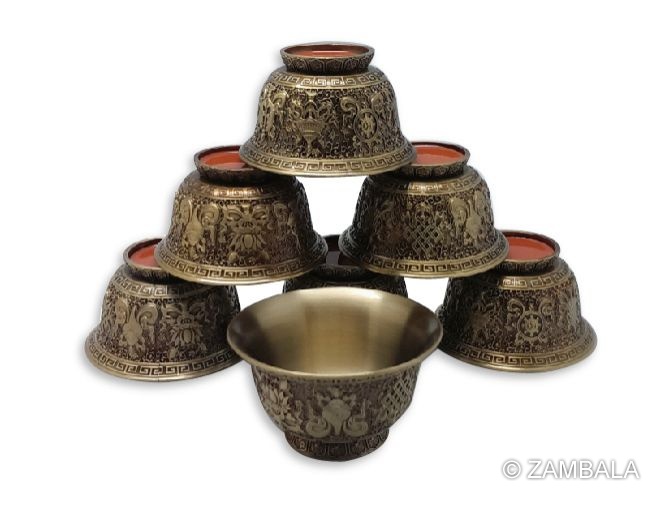 純銅八吉祥供杯-6.5cm(7pcs.set)
