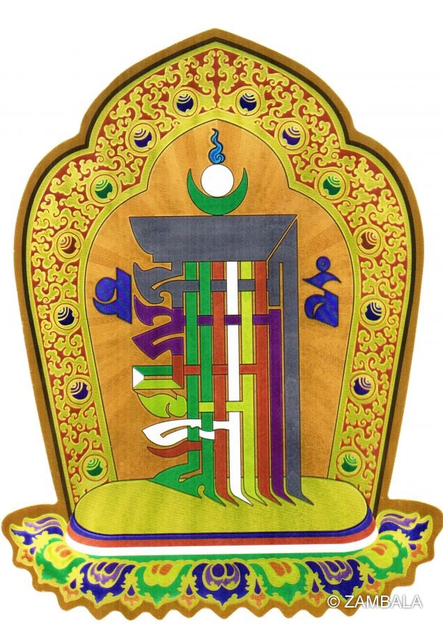 標志密乘本尊與其壇城合為一體的一個時輪圖形,是集三界器世間的一切精華於一體的象徵,具有裝飾和辟邪的功效。
