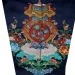 時輪金剛圖案通常描繪藍色四臂本尊擁抱明妃(維奢拉),手持寶劍、寶鐘等,腳踏時間輪(須彌山、日月輪),象徵征服時間與業力輪迴。最早由薩迦派傳入西藏,後普及於格魯、寧瑪等派。達賴喇嘛常主持時輪灌頂大法會(如1981年美國華盛頓大會),以祈世界和平。印有此圖案的門簾源自藏傳護法傳統,用於帳篷或寺門守護,後融入漢地佛教家居,如台灣的佛堂門簾,作為「時間護輪」,阻擋時空煞氣、調和宇宙能量。