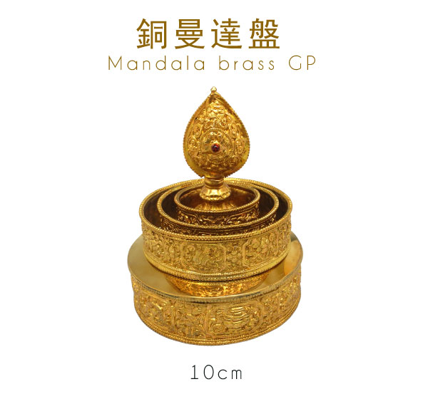 曼達盤象徵著宇宙的中心和邊緣,代表須彌山、四大洲、日月等元素。宗喀巴大師(1357-1419)曾以石板作為曼達盤進行供養,後來逐漸發展出以金、銀、銅等材質製作的曼達盤,並鑲嵌珠寶、玉石作為裝飾。