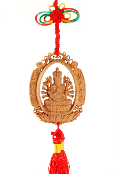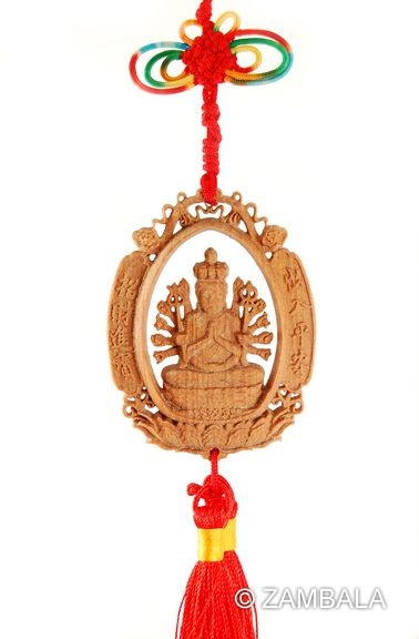 | Wooden Carved Deity Charm, 1,000 Arms Avalokiteshvara |