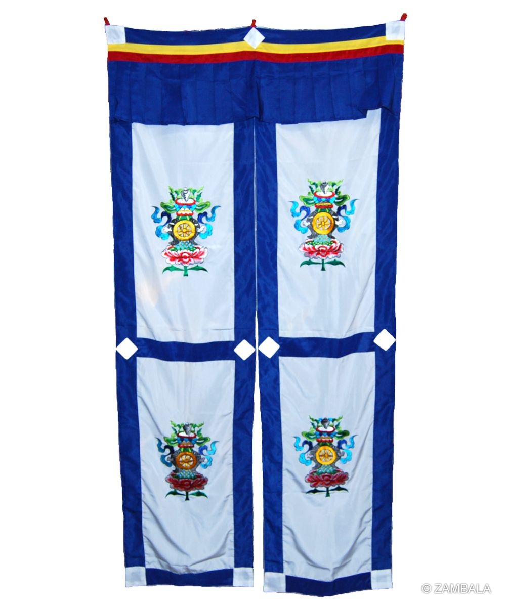 - **懸掛方式**:大多數八吉祥門簾頂部有3個吊環(loops),直接掛在門框上的鉤子、橫桿或簾桿上。無需特殊儀式,但建議在懸掛前以清淨心念誦咒語(如「嗡嘛呢貝美吽」)或祈願,增強加持力。