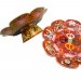 曼達盤通常由多層塔盒和螺頂組成,每層塔盒中空,可裝滿金銀、寶石、糧食等供物。修法時,修行者一邊誦念真言,一邊將供物撒入曼達盤中,逐層堆疊至螺頂,象徵祈願吉祥幸福。