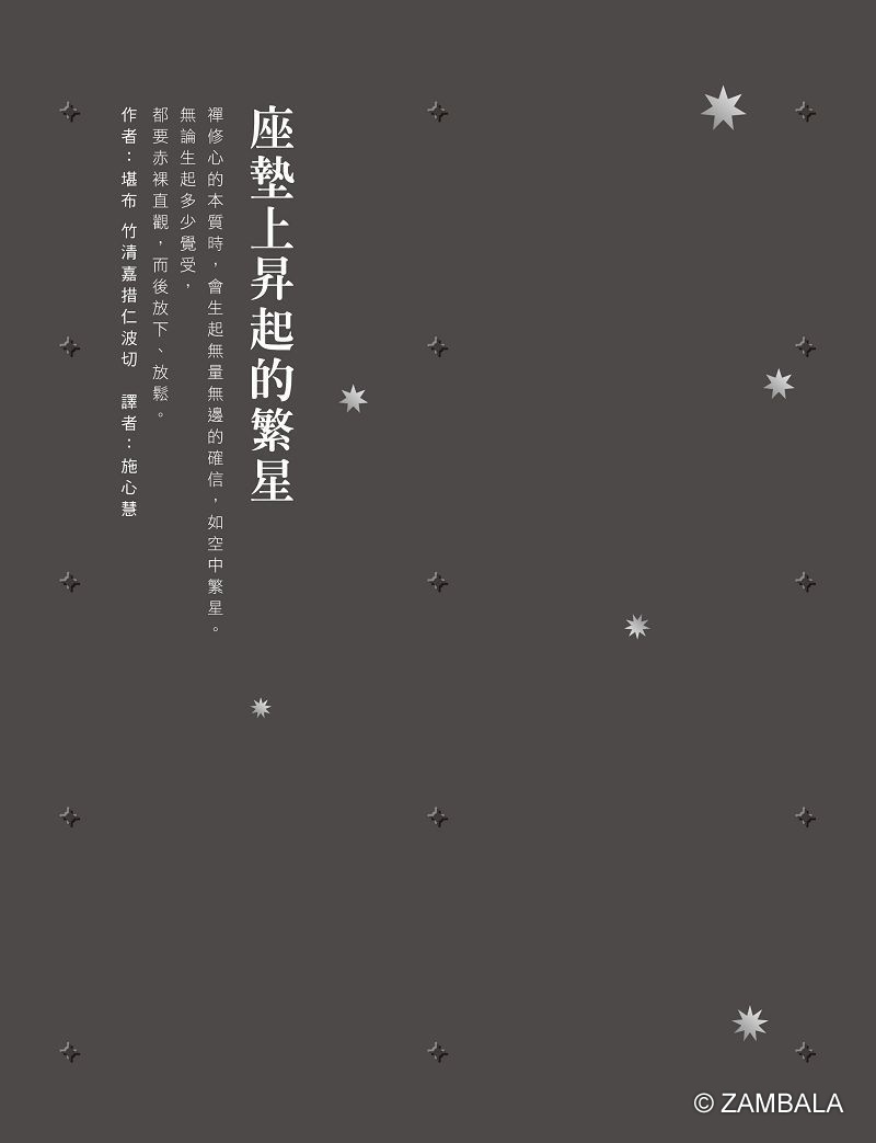 本書是堪布 竹清嘉措仁波切10篇「直指人心」的開示集。內容分四部分,分別是見林、見樹、見果和祈願:先帶你宏觀看見修行的全貌,再微觀深入修行的細節,當確信與覺受如繁星昇起時,帶你親嘗修行的甜美果實,最終,以「了義的祈願」畫下句點。