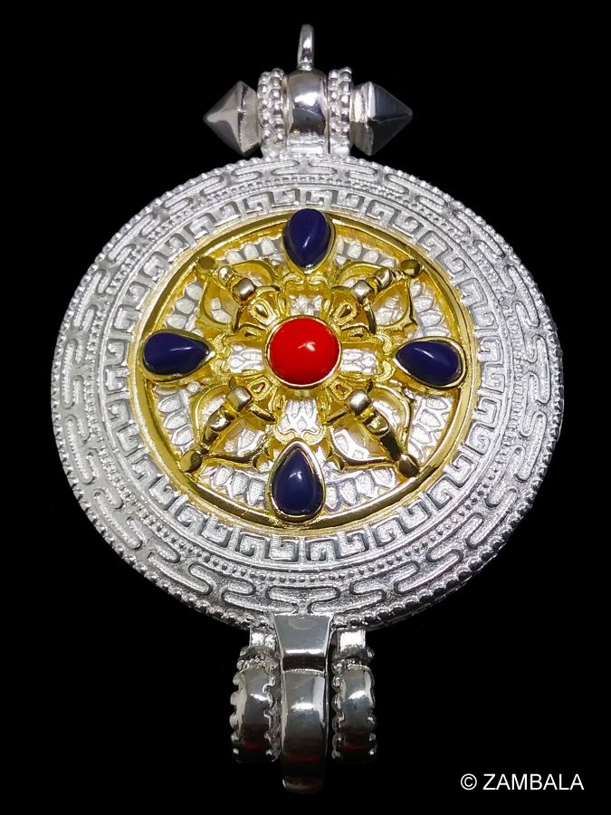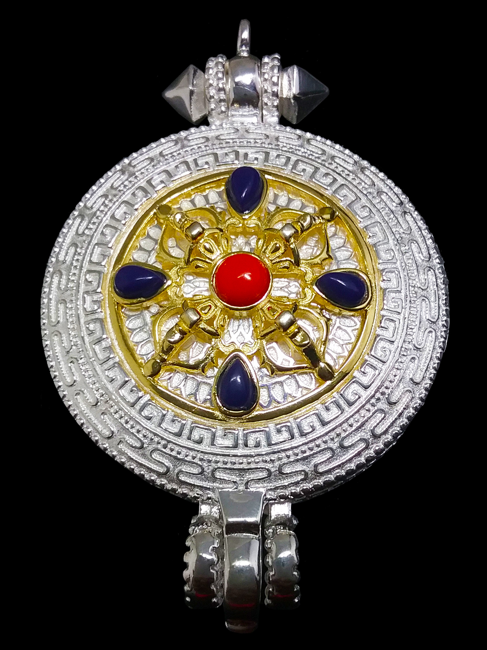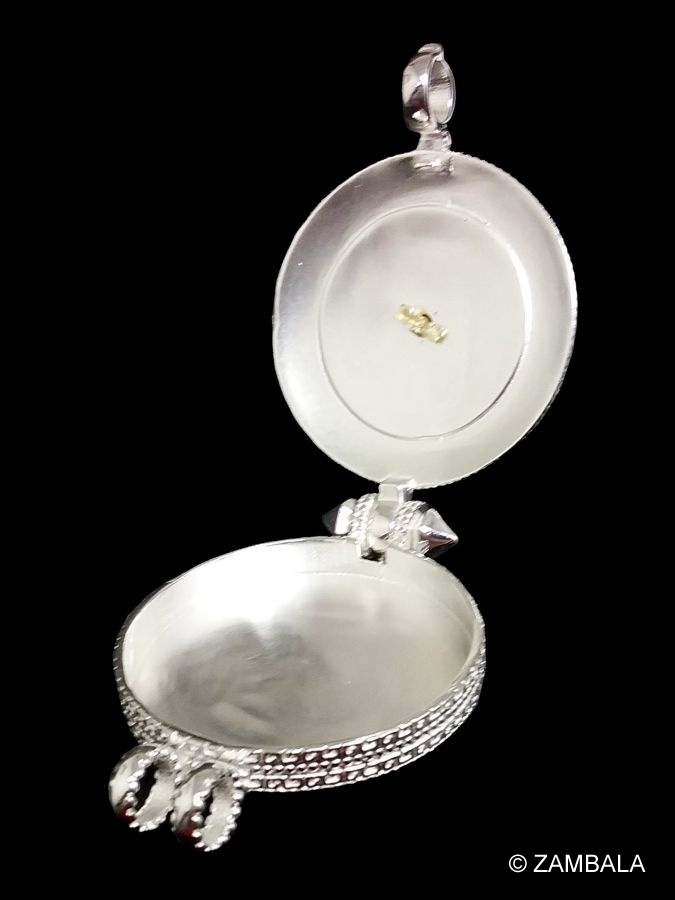 2. **隨身壇城**:嘎烏內部通常裝有**佛像、舍利子、甘露丸、經文**等聖物,象徵著**隨身攜帶佛法僧三寶**,使修行者時刻與佛法相應。