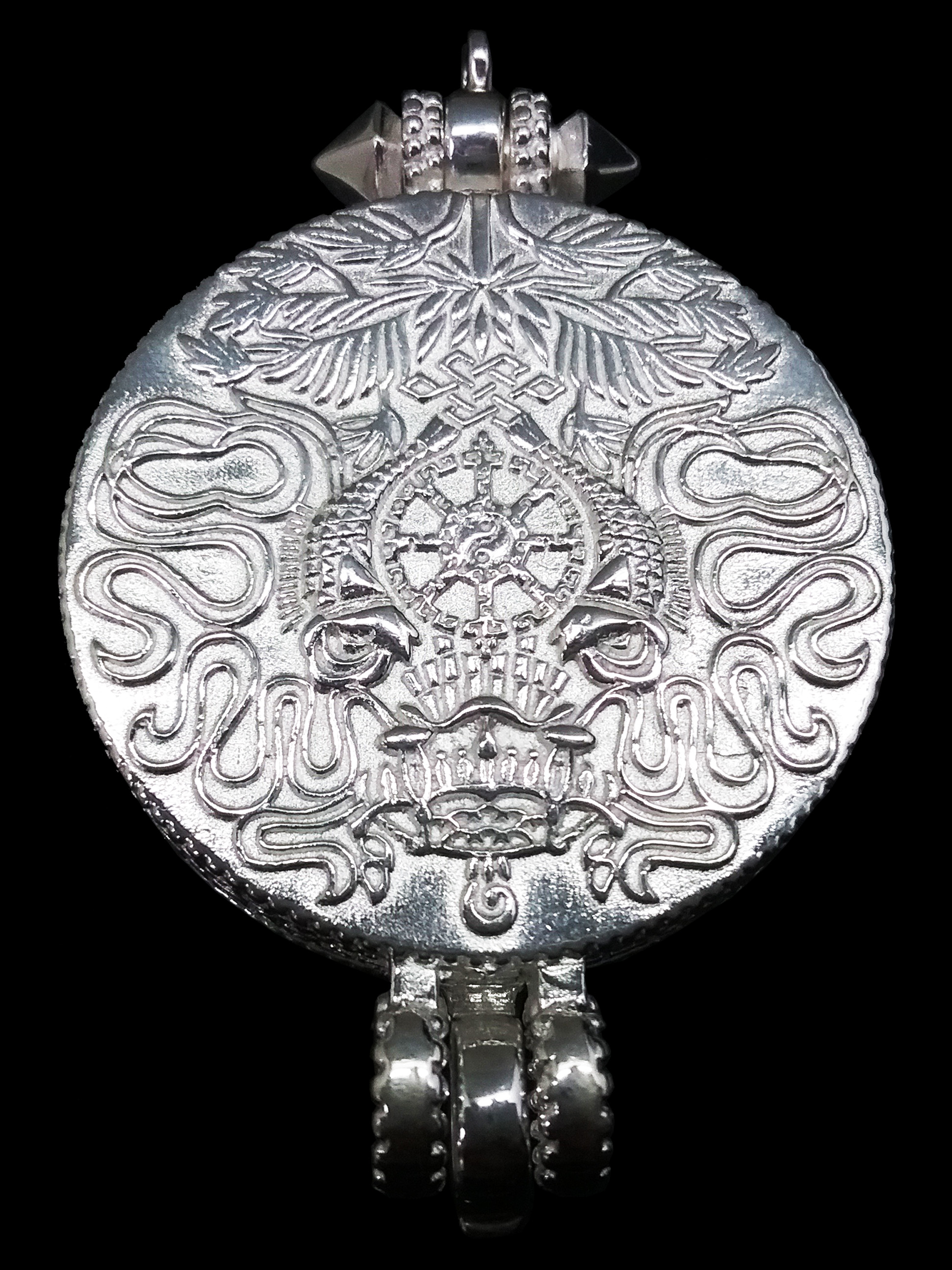 3. **避邪與化煞**:銀製嘎烏具有**驅邪避害**的作用,能夠**逢凶化吉、鎮宅安神**,許多藏族修行者會將其掛於家中或車內,以求平安。