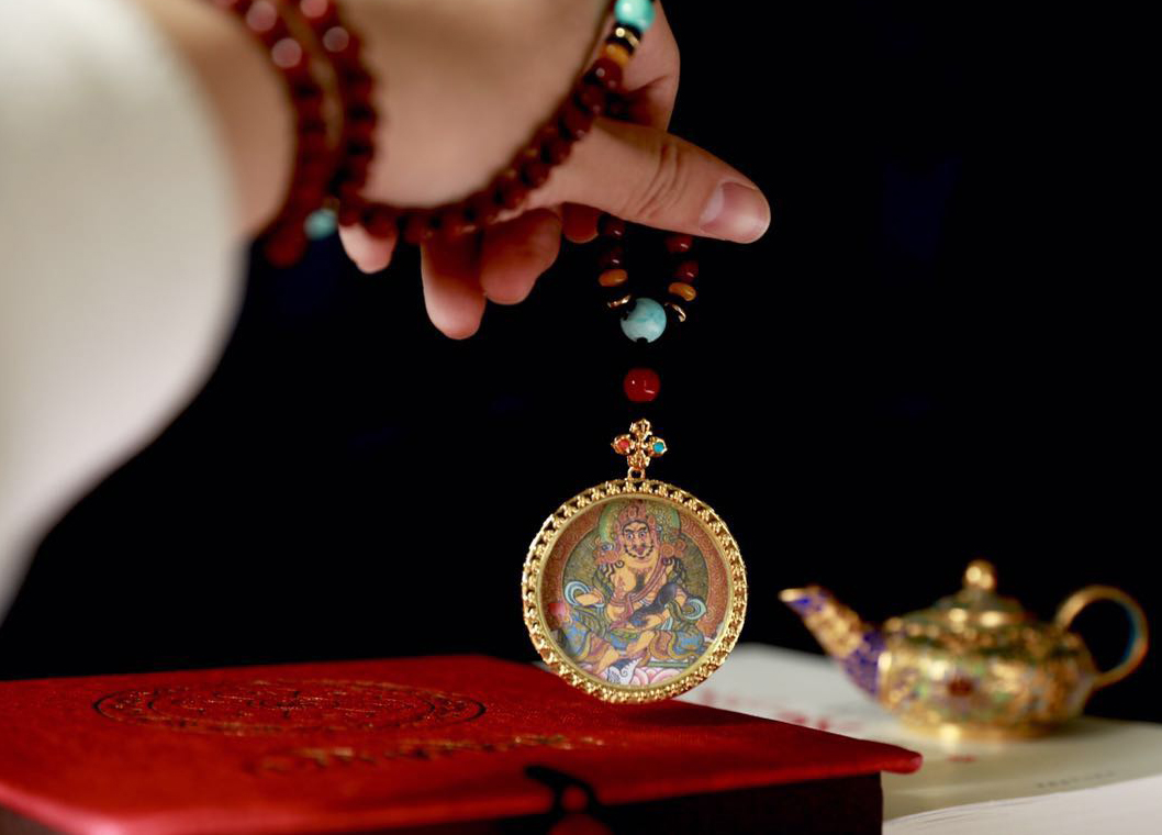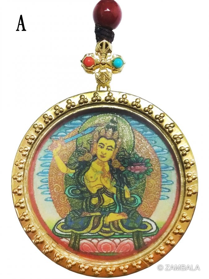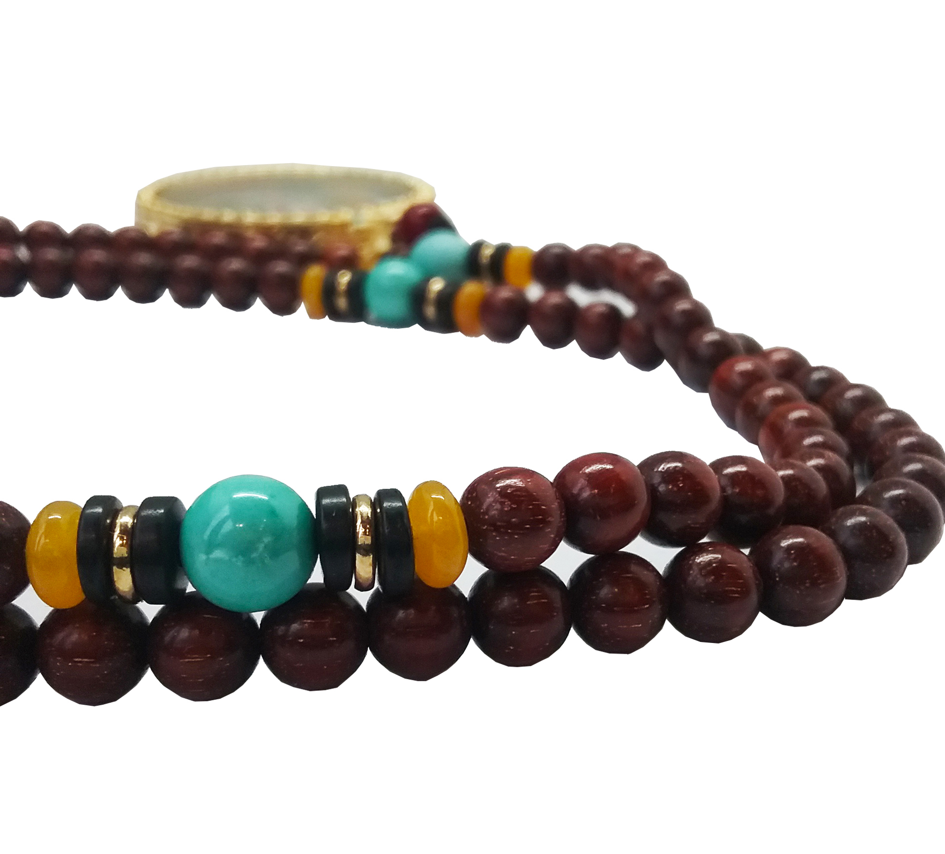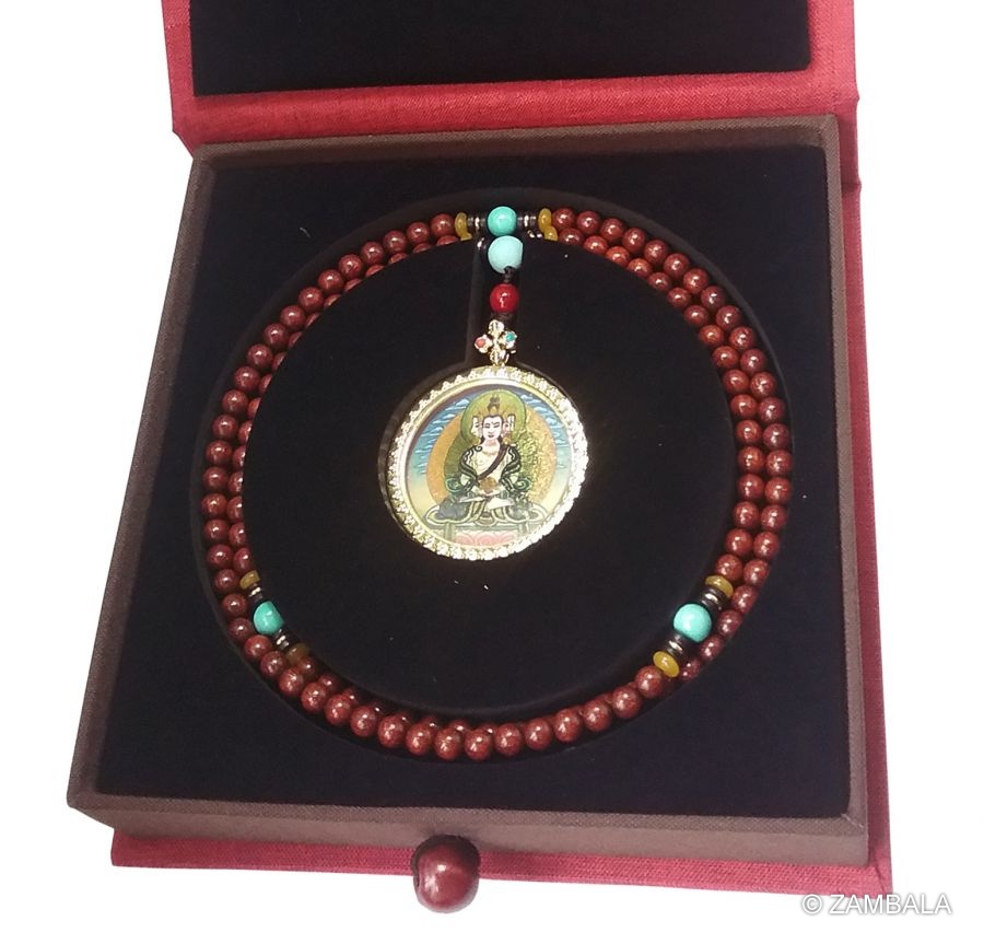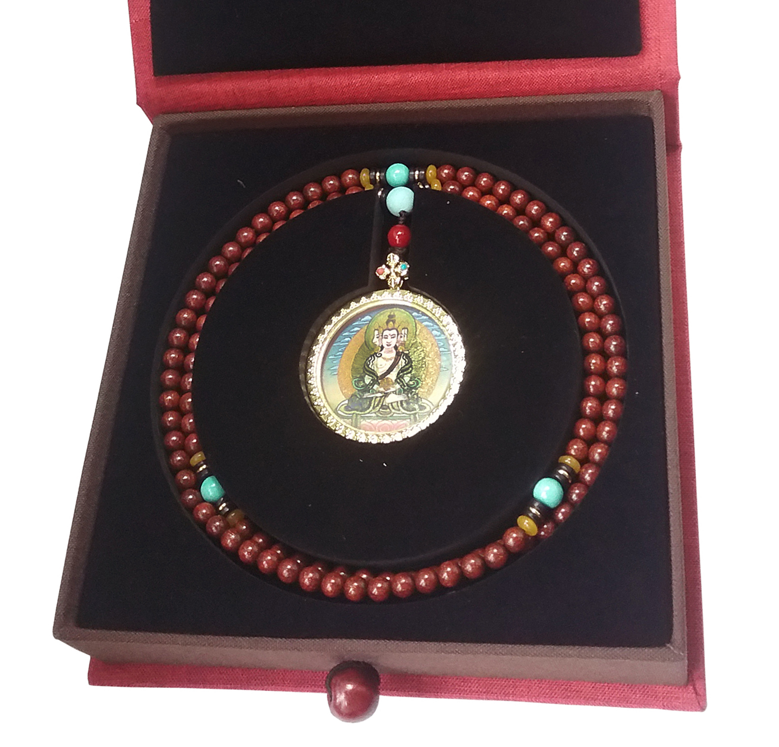 小葉紫檀鍊鍍金手繪唐卡掛墜