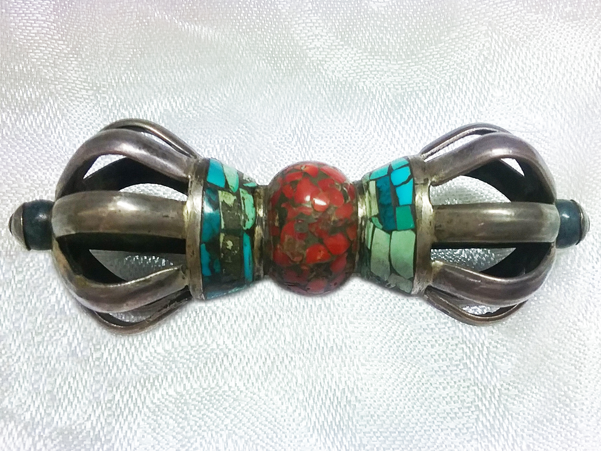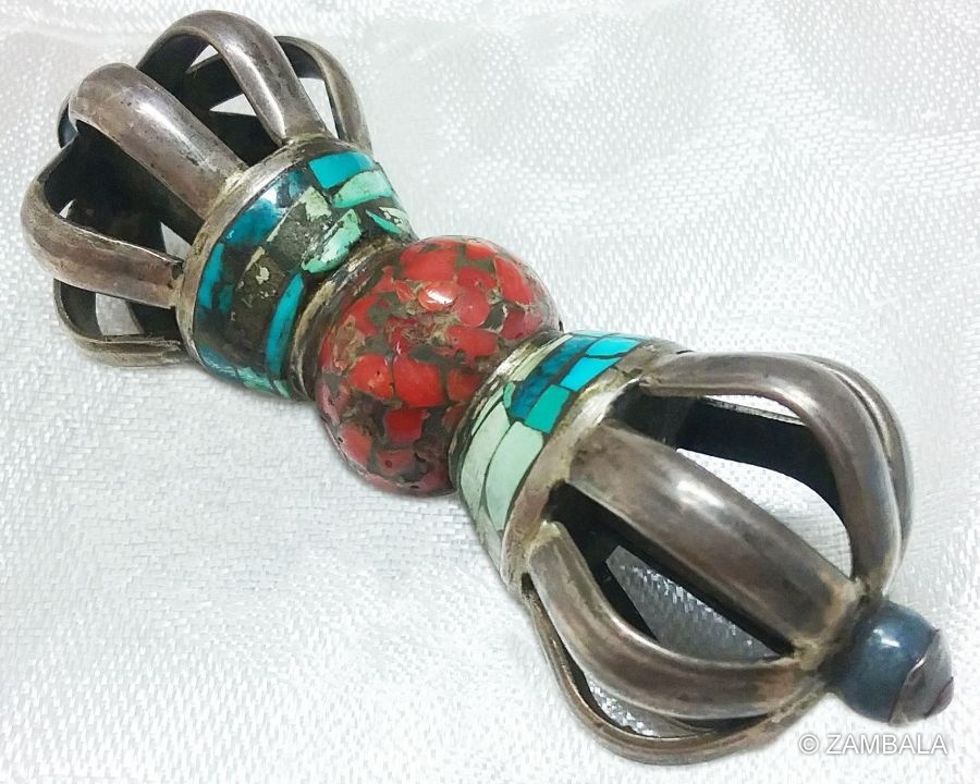 尼泊爾純銀鑲寶石九股杵