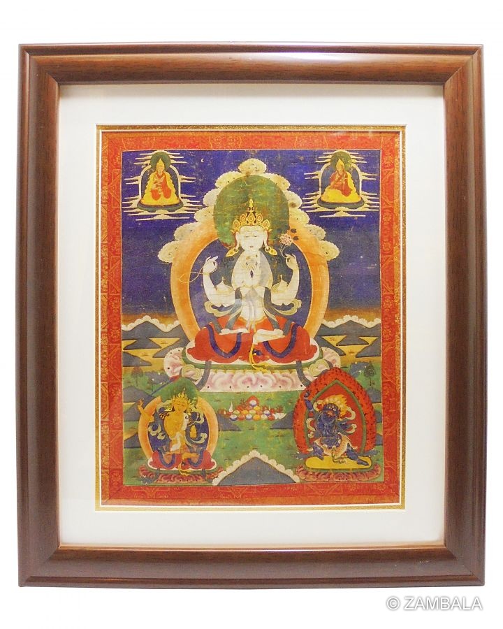 四臂觀音裱框唐卡