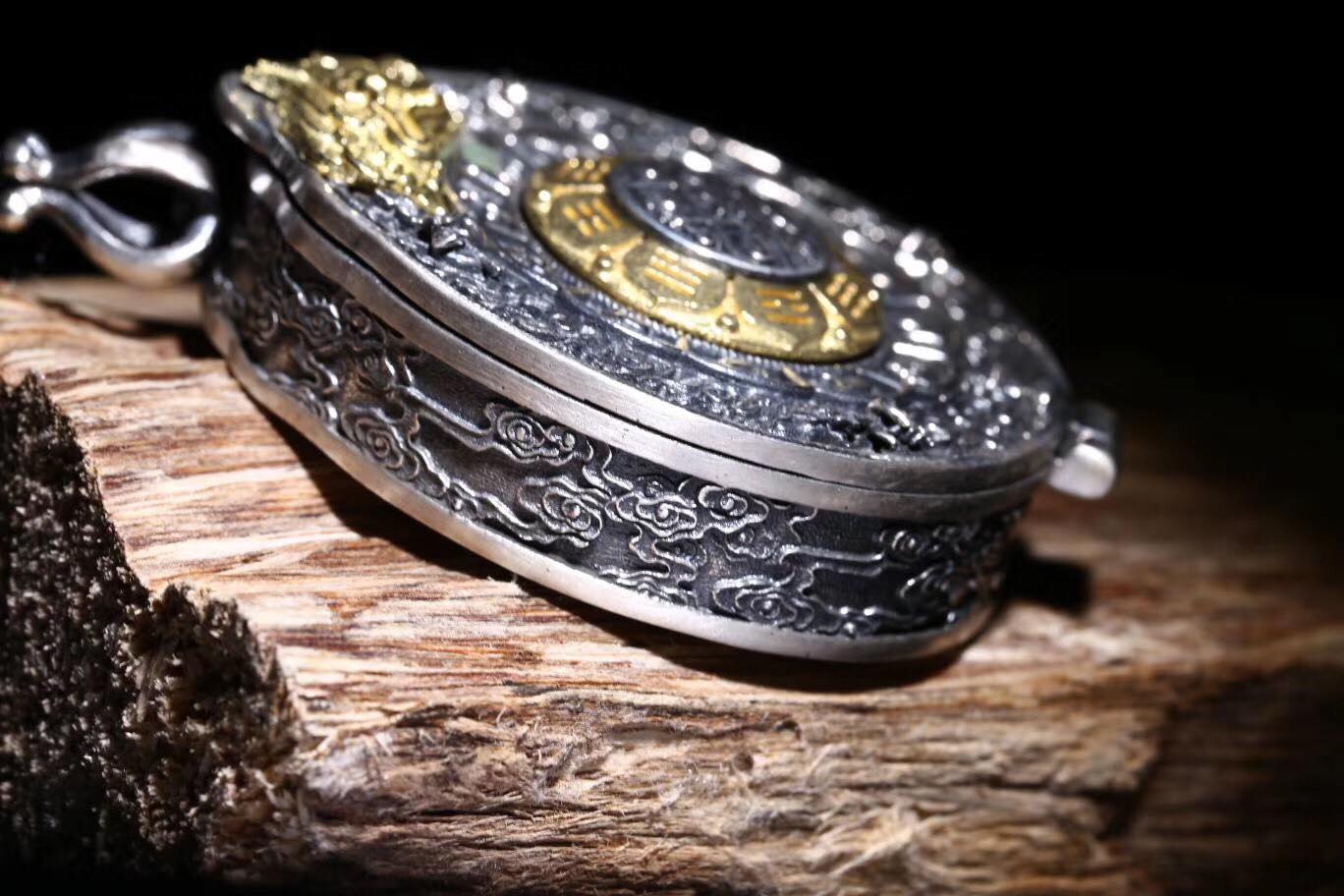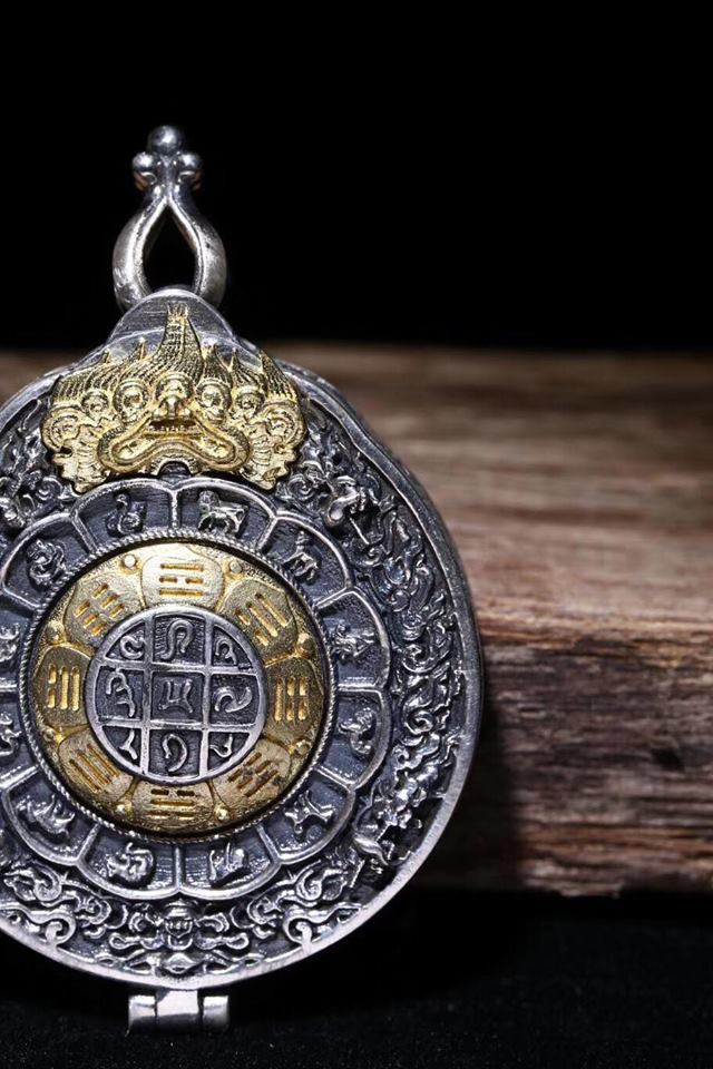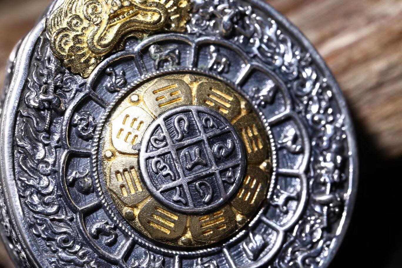 藏人多佩戴九宮八卦,如同置身於文殊九宮八卦之中,以求除兇避惡,轉運開吉。此款嘎烏盒 設計精美,卡扣緊密。正面九宮八卦可高速旋轉,寓意時來運轉。