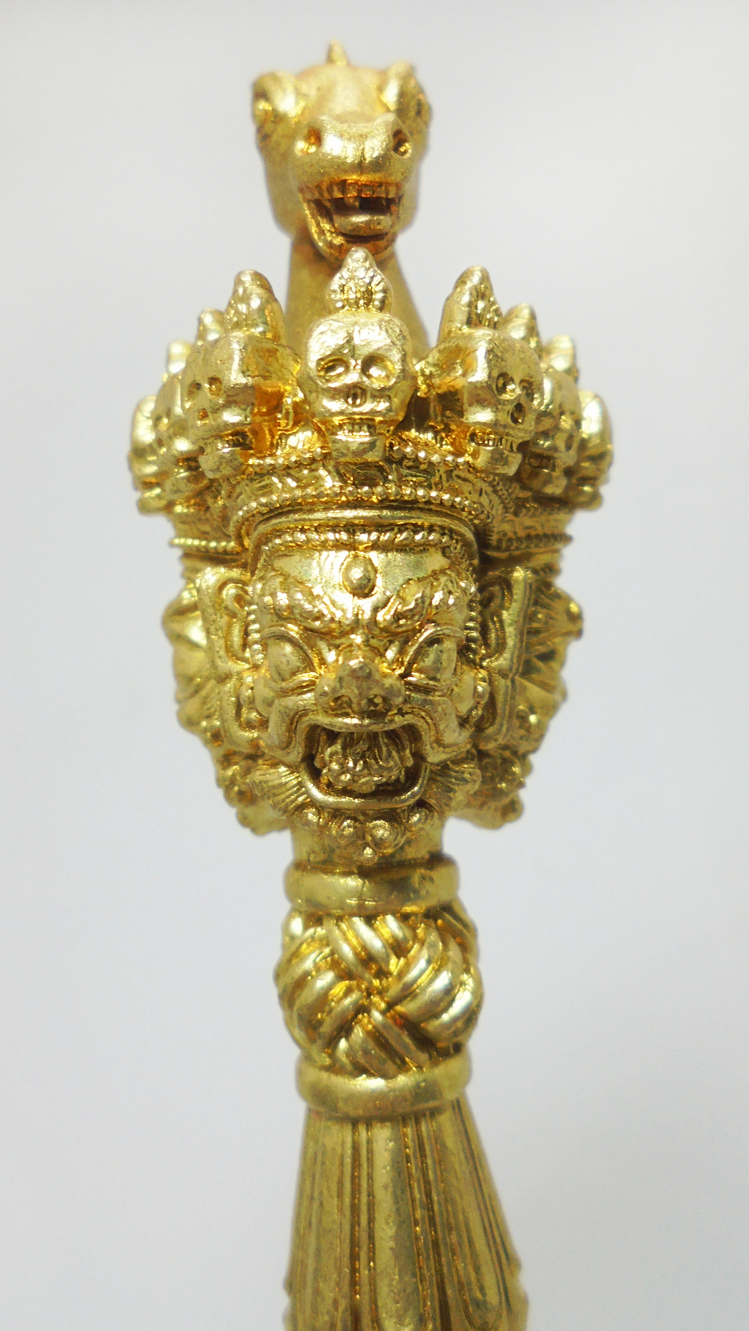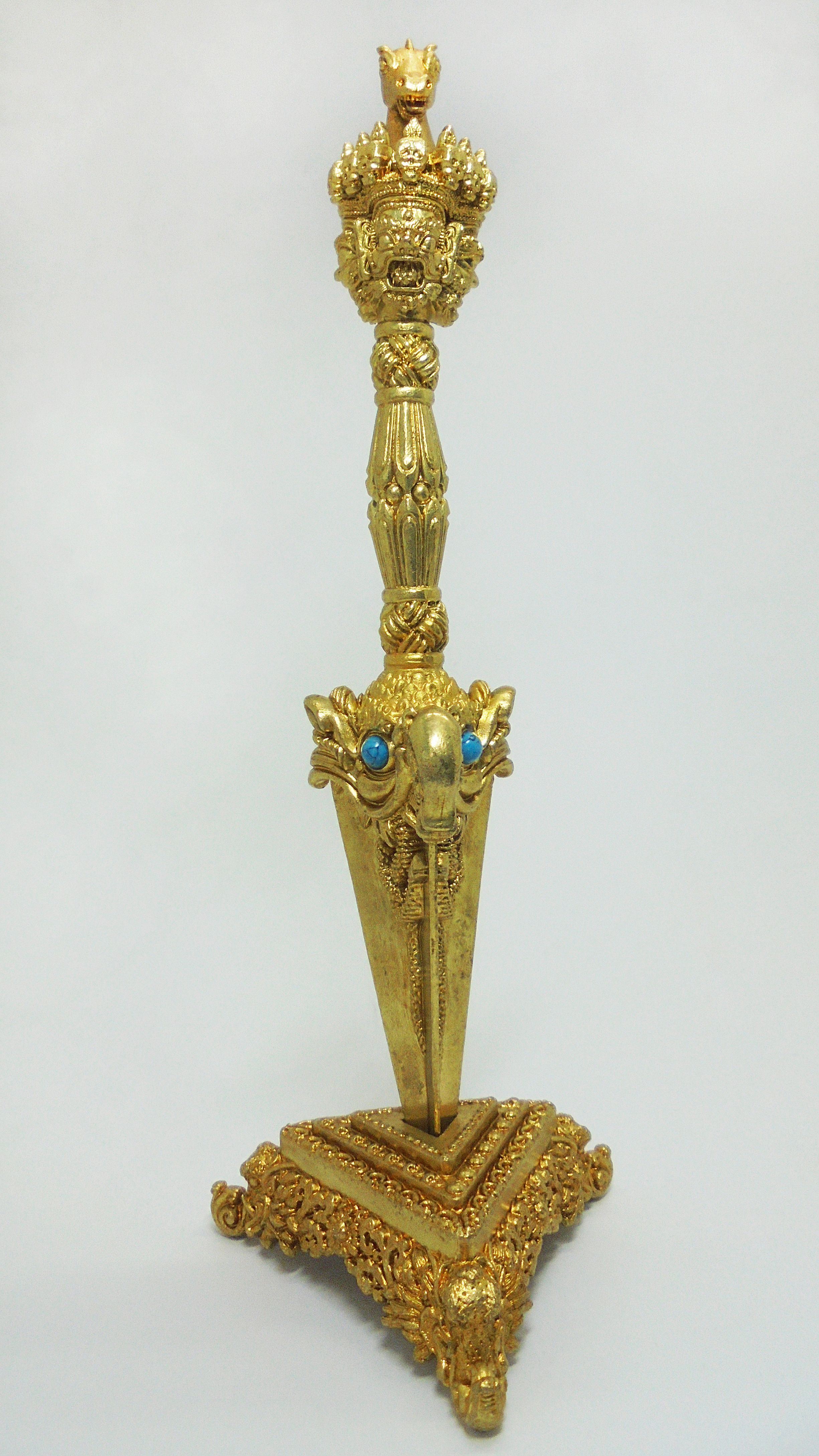 黃銅三面馬頭明王杵(含底座)