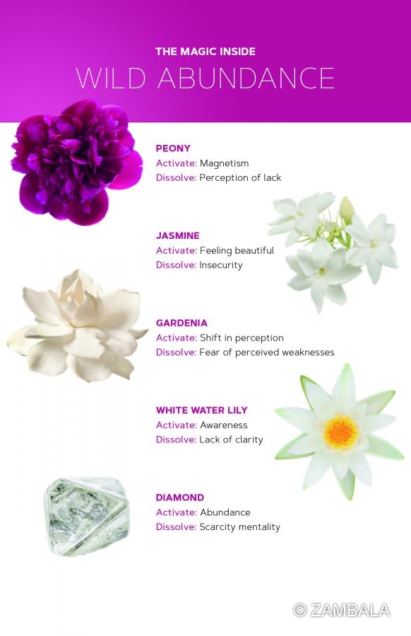 精油: 大花茉莉(Jasminum grandiflorum),夏威夷檀香木(Santalum paniculatum), 蜂香薄荷(Monarda fistulosa), 鳶尾草(Iris germanica), 佛木/澳洲天壇木(Eremphila mitchellii)