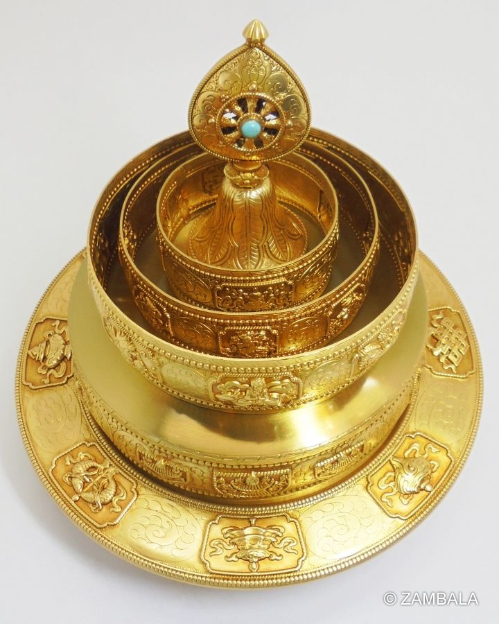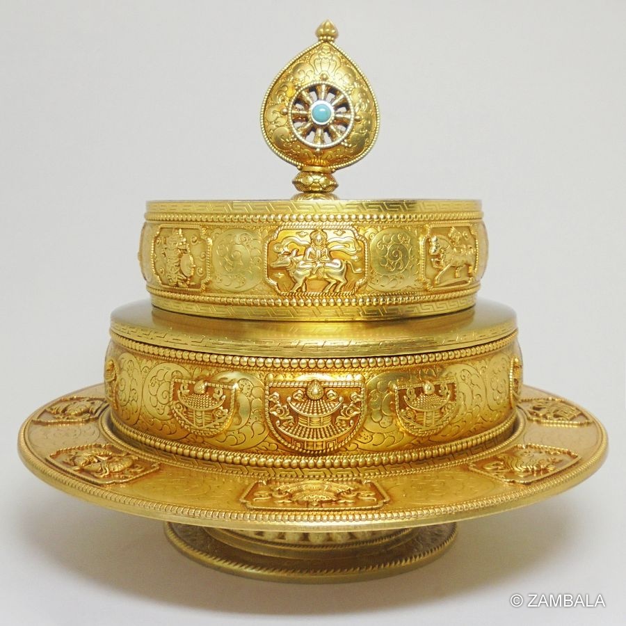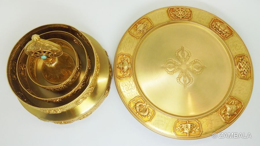 曼達盤主要是藏傳金剛乘密法之供養法器,用以快速聚集成佛資糧道,增長世間福德智慧資糧。一般通常固定供奉在壇城上,在法會時或修四加行時,均可以修供曼達供養法。曼達盤內通常裝置七珍八寶,各種珠寶珍寶或米用以上供上師、諸佛、菩薩、本尊 護法 空行母及其眷屬。以此供養之功德,快速累聚資糧福報俱足讓修法過程順利無障礙,回向法界眾生悉蒙諸佛菩薩,慈悲護唸攝受加持灌頂,同得功德利樂,業障消除、福慧增長,是一般修密法者常用的法器。