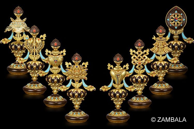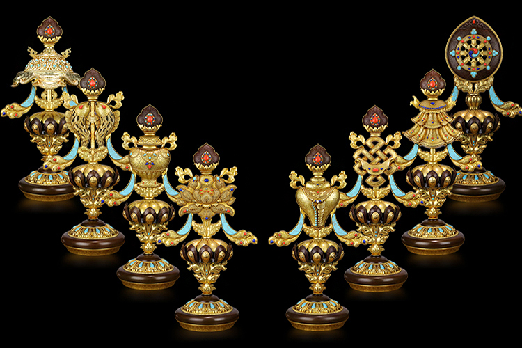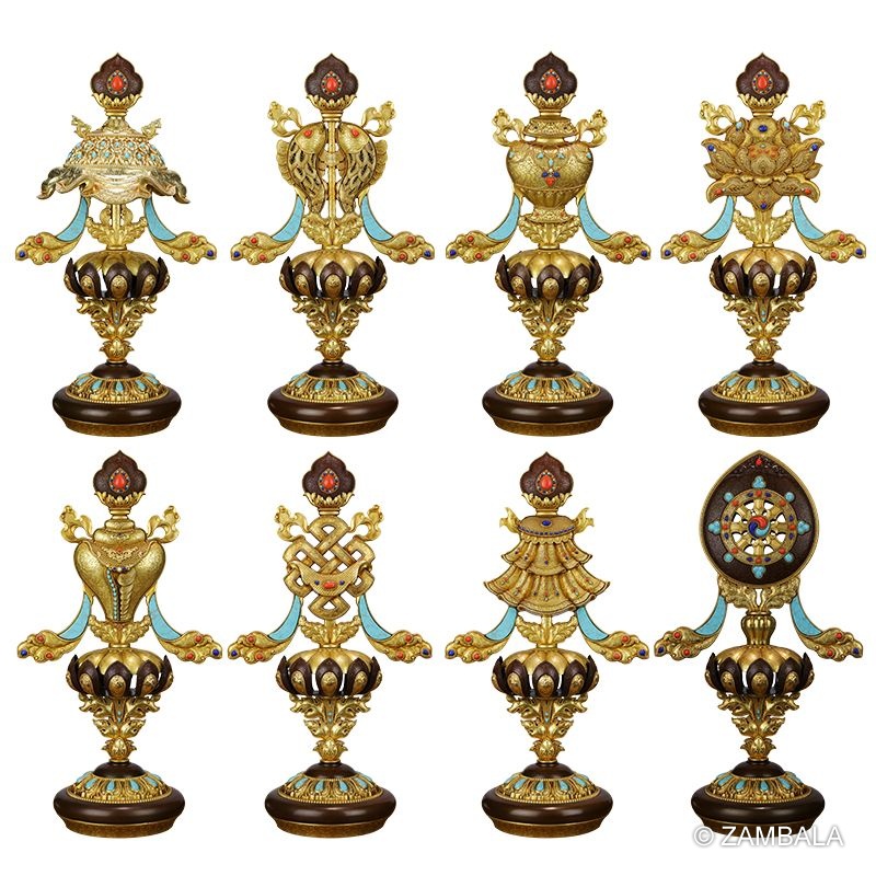 藏傳佛教的「八吉祥」是一組代表幸運與吉祥的符號。這些符號在佛教藝術和儀式中非常普遍。以下是八吉祥符號及其含義和由來的詳細說明: