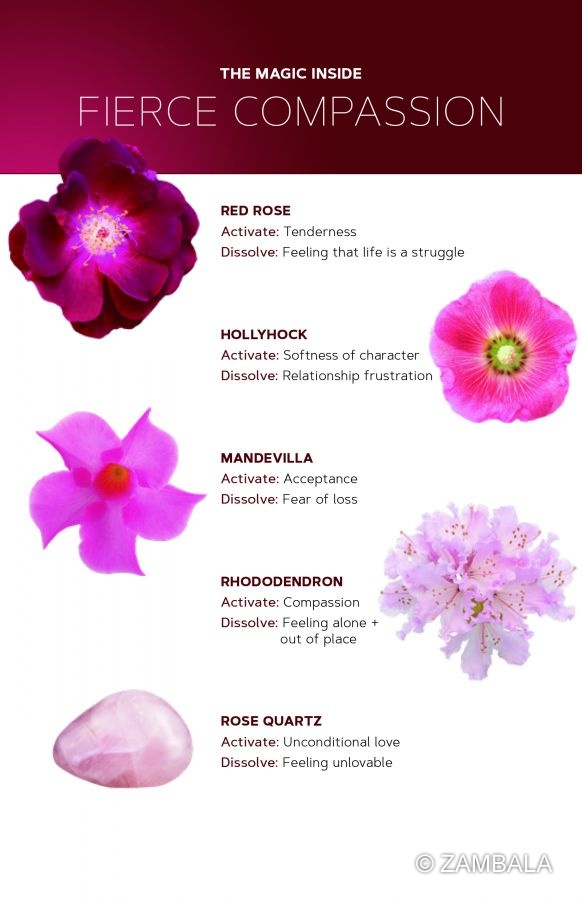 花精(炁)(波): 玫瑰(Rosa spp.), 蜀葵(Alcea rosea), 飄香藤(Mandevilla sendari ),杜鵑(Rhododendron ferrugineum), 西洋蓍草(Achillea millefolium), 白蓮花(Nelumba nucifera)