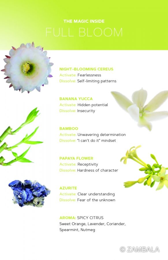花精(炁)(波): 霸王花(Echinopsis Candicans), 香蕉絲蘭(Yucca baccata), 簕竹(Bambuseae), 番木瓜花(Carica papaya), 西洋蓍草(Achillea millefolium), 白蓮花(Nelumba nucifera)