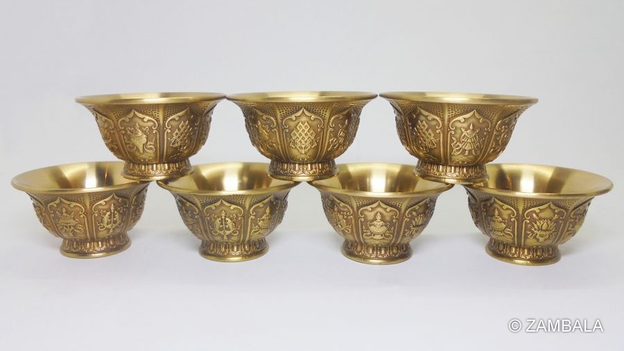 在佛教儀式中,「八供杯」(或簡稱「八供」)是金剛乘(密宗)或藏傳佛教中最常見的供養形式之一,用來表達對諸佛菩薩的敬奉與積聚功德。它通常由八個水晶或金屬製成的杯子組成,置於壇城(曼達拉)前方,從左到右(或右到左,視本尊類型而定)排列,每個杯子代表一種供養品。八供不僅是物質上的奉獻,更是象徵修行者透過供養來淨化身心、圓滿六度(布施、持戒、忍辱、精進、禪定、智慧),並積累福德資糧。