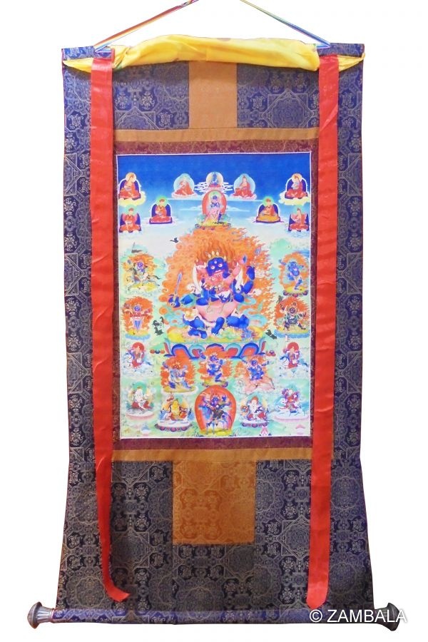 西藏布框印刷〝四臂瑪哈嘎拉〝唐卡
