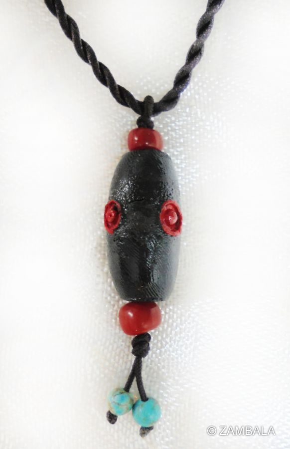 咒珠中央包裹經咒.外表為手工捏製的天然樹膠質物.