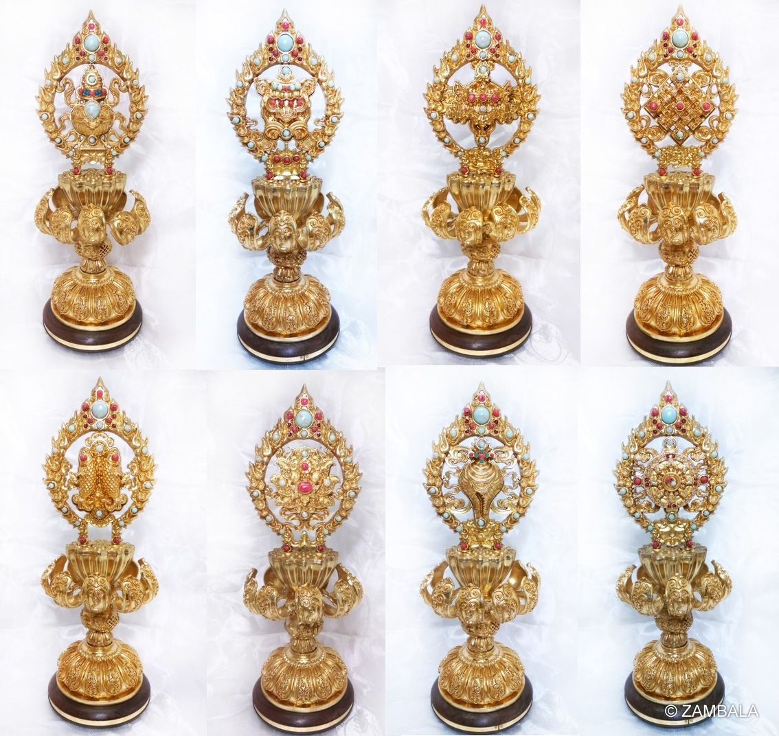 藏傳佛教的「八吉祥」是一組代表幸運與吉祥的符號。這些符號在佛教藝術和儀式中非常普遍。以下是八吉祥符號及其含義和由來的詳細說明:
