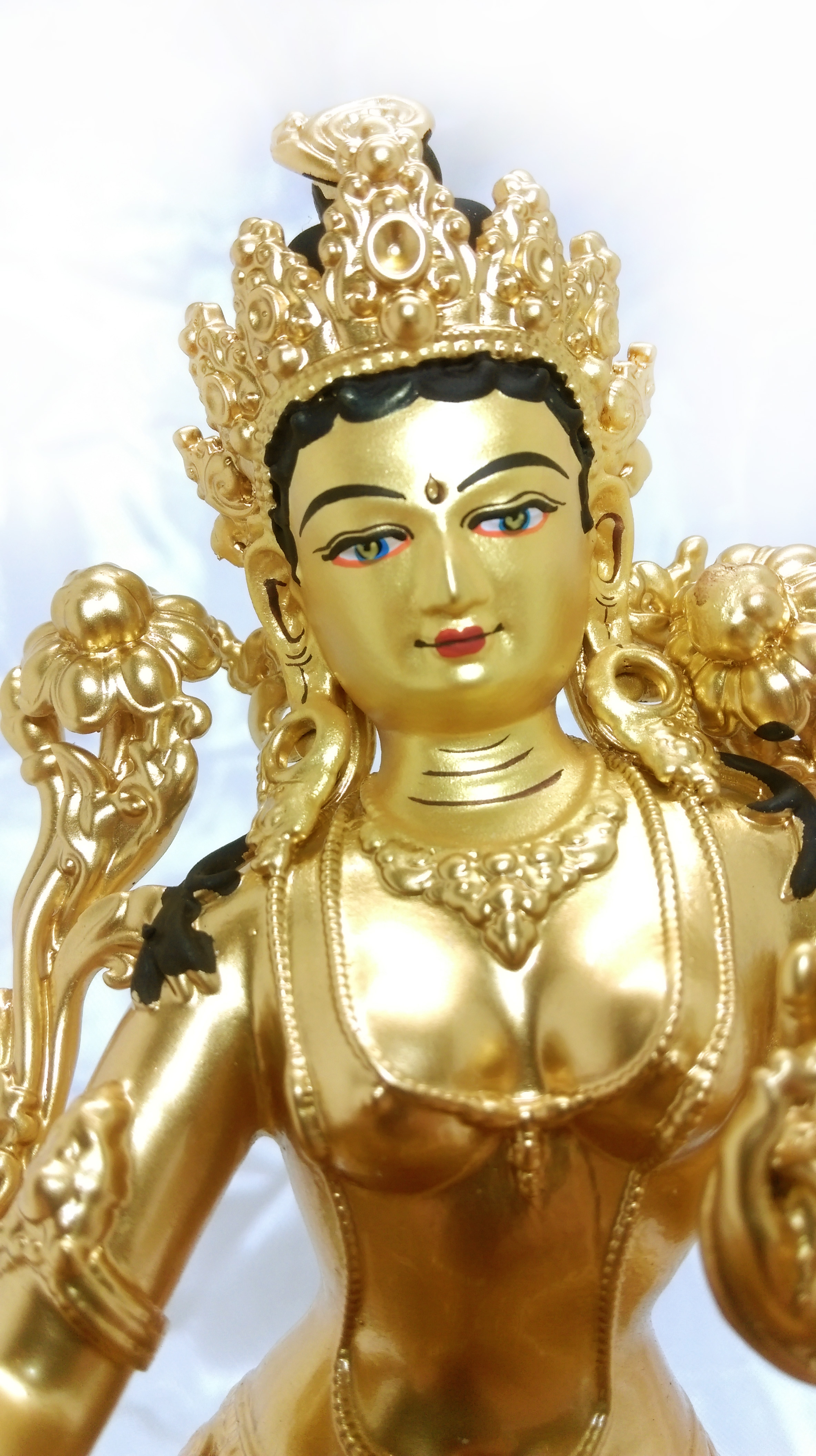- **造像特徵**:綠身、右腿垂下(表示隨時起身救度)、左手持青蓮花(象徵淨化)、右手施與願印。唐卡、佛像中常見,影響尼泊爾、蒙古、不丹藝術。